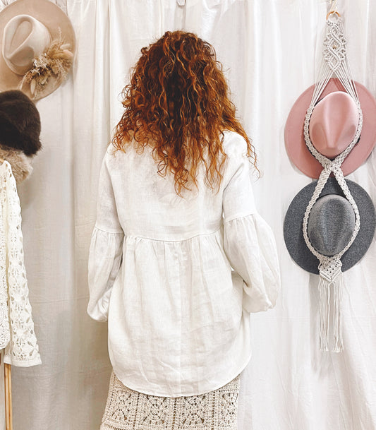 BOHO LINEN TOP ~ ANTIQUE WHITE