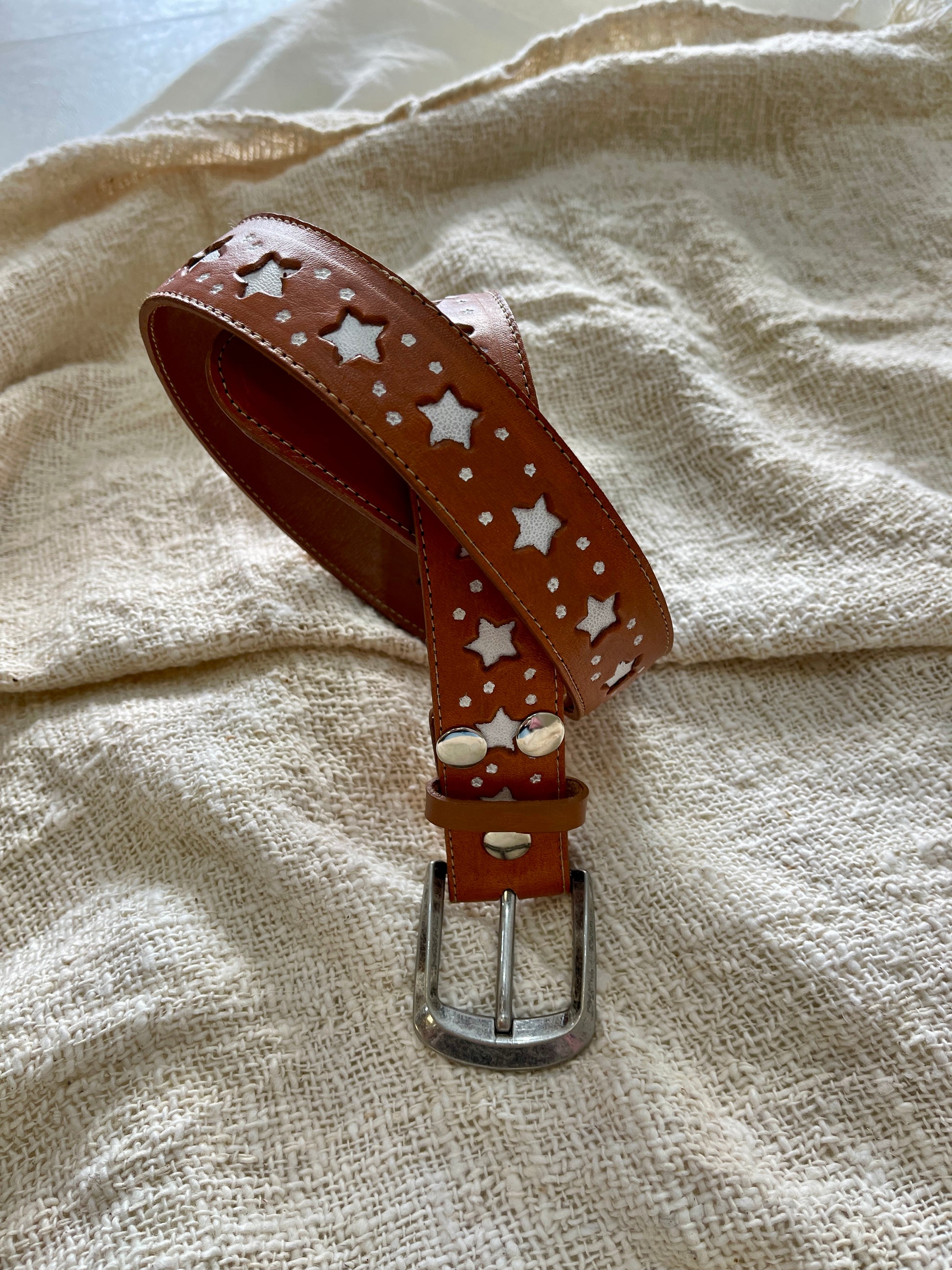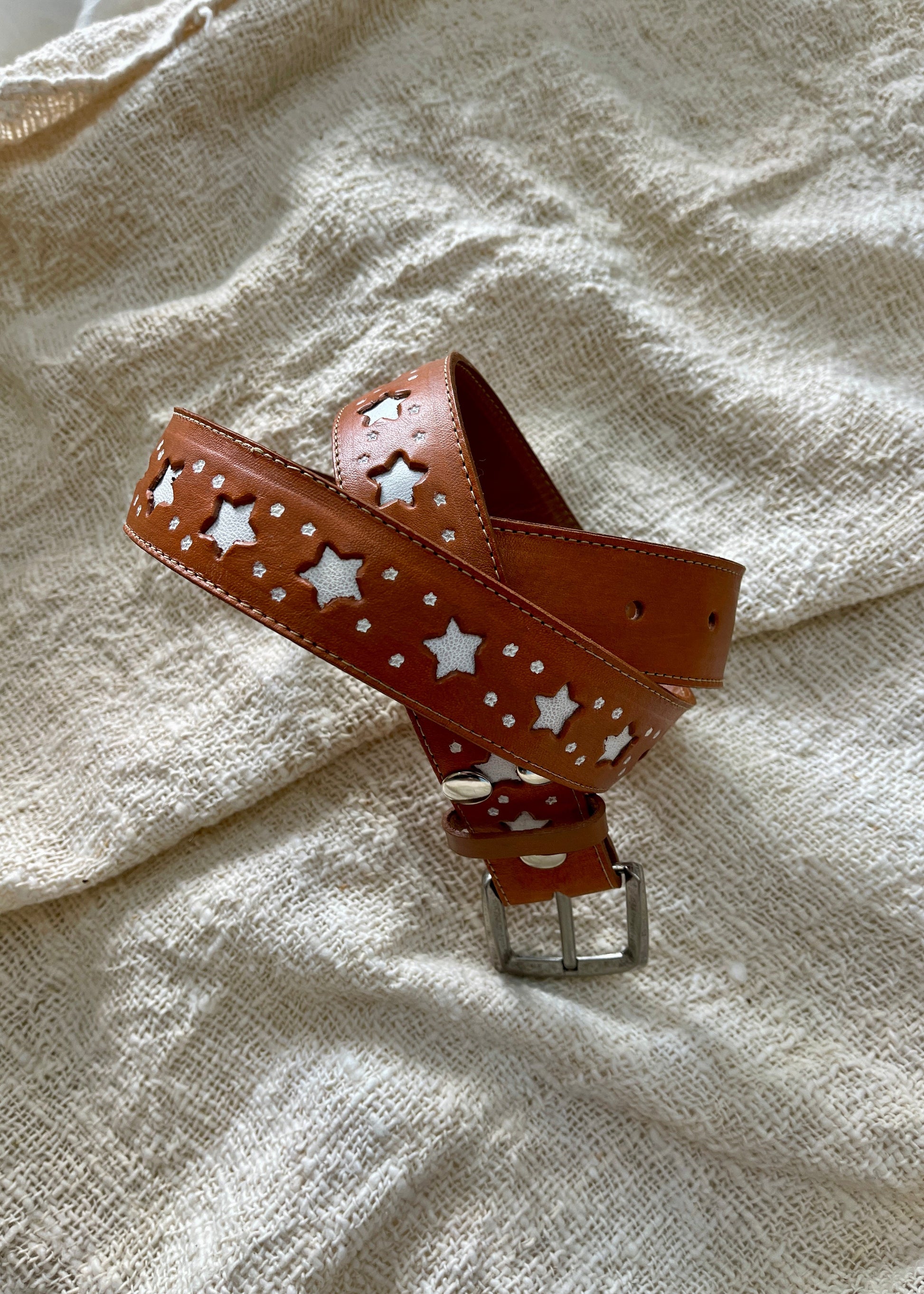Meet the Desert Star Belt your boho essential with a celestial twist 🌟 Crafted from genuine tan leather with cut out star detailing and a distressed buckle finish, this belt is where rustic charm meets boho vibes.