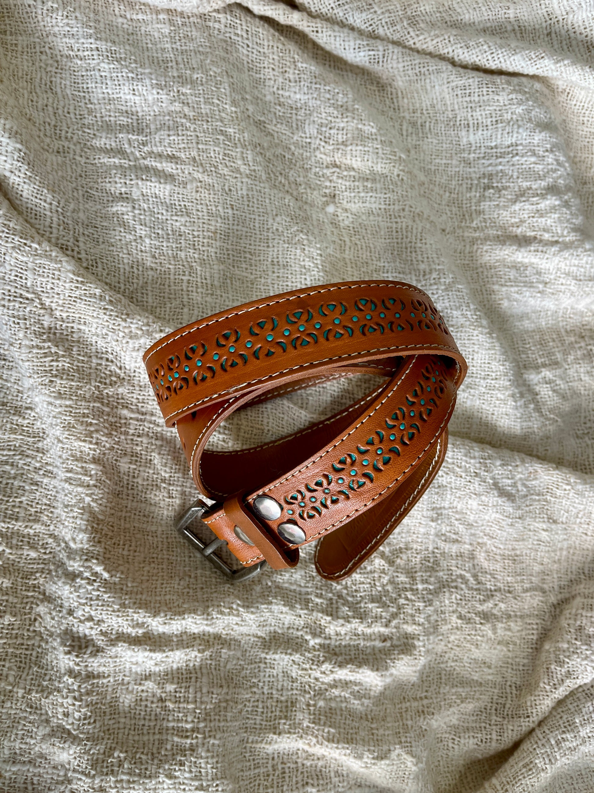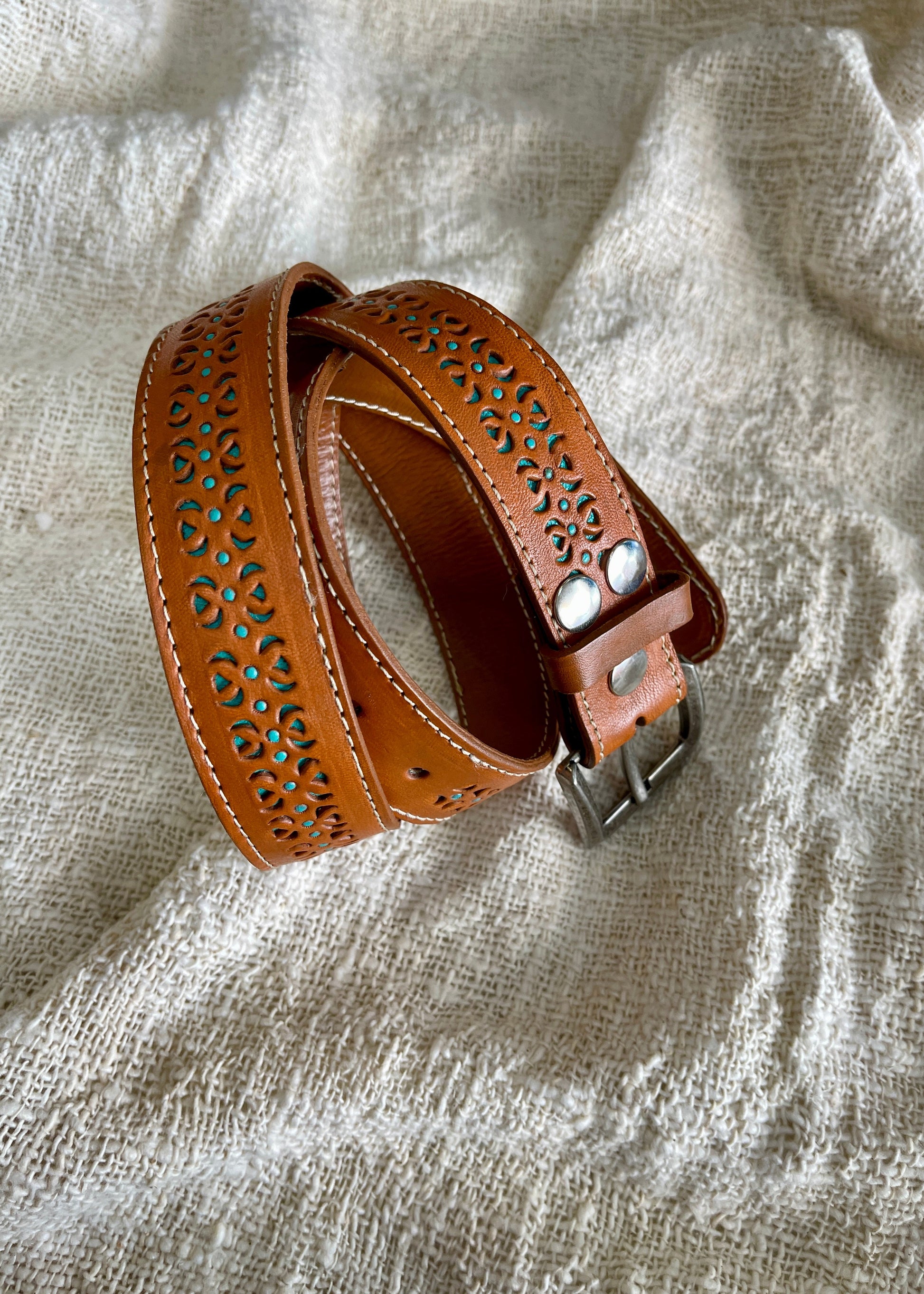 Channel effortless boho vibes with the Sahara Belt 🌸 Crafted from genuine tan leather with teal cut out detailing and a distressed buckle finish, this belt is the perfect blend of rustic charm and free spirited style.