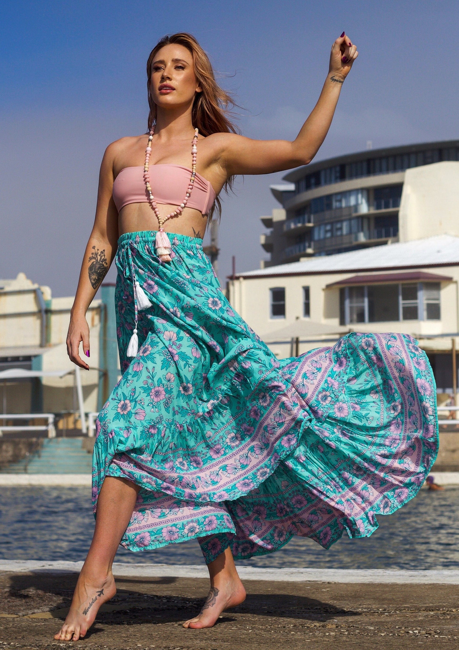 Unleash your inner free spirit with our stunning Boho Maxi Skirt, designed to elevate your style and embrace the essence of bohemian beauty.