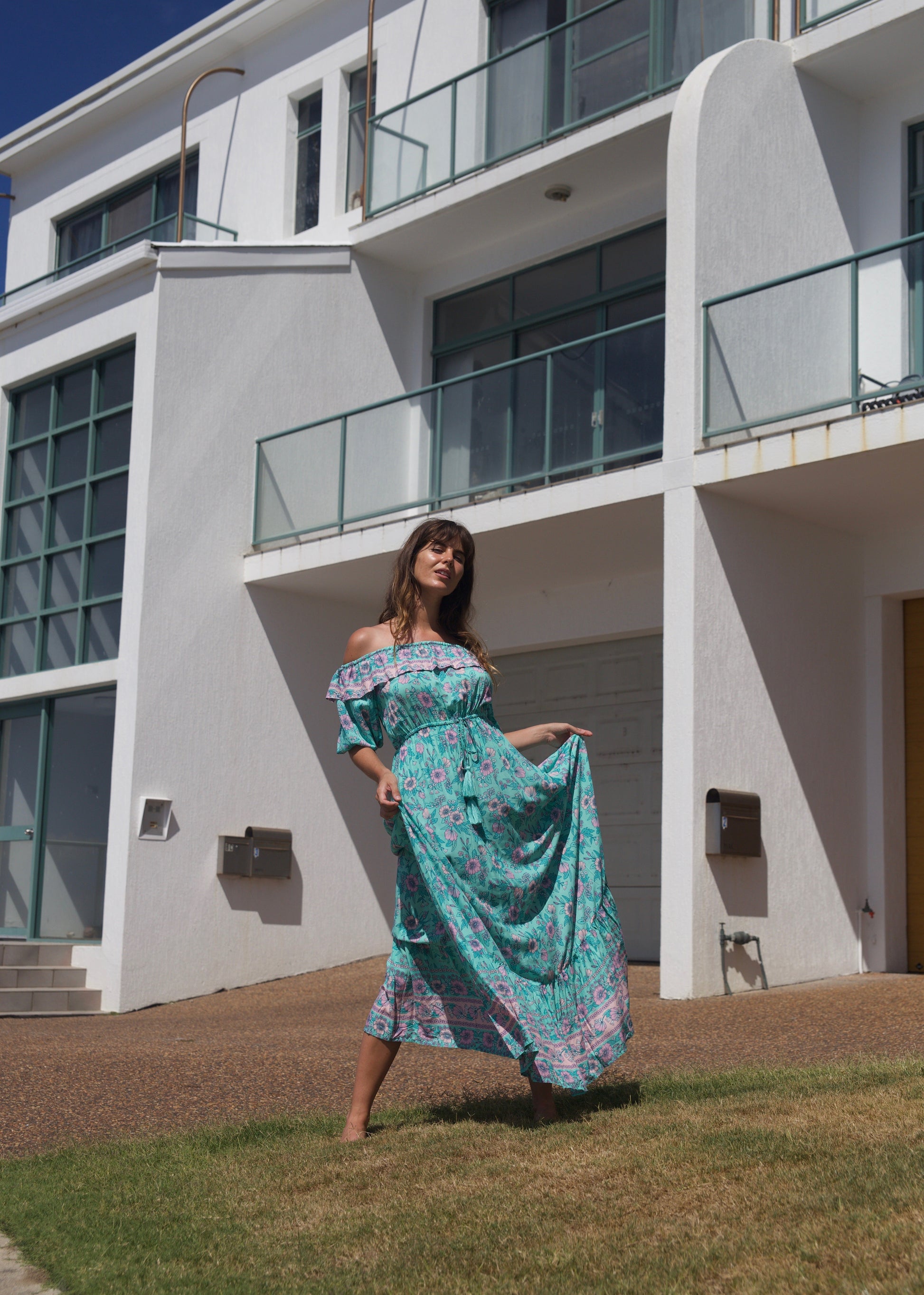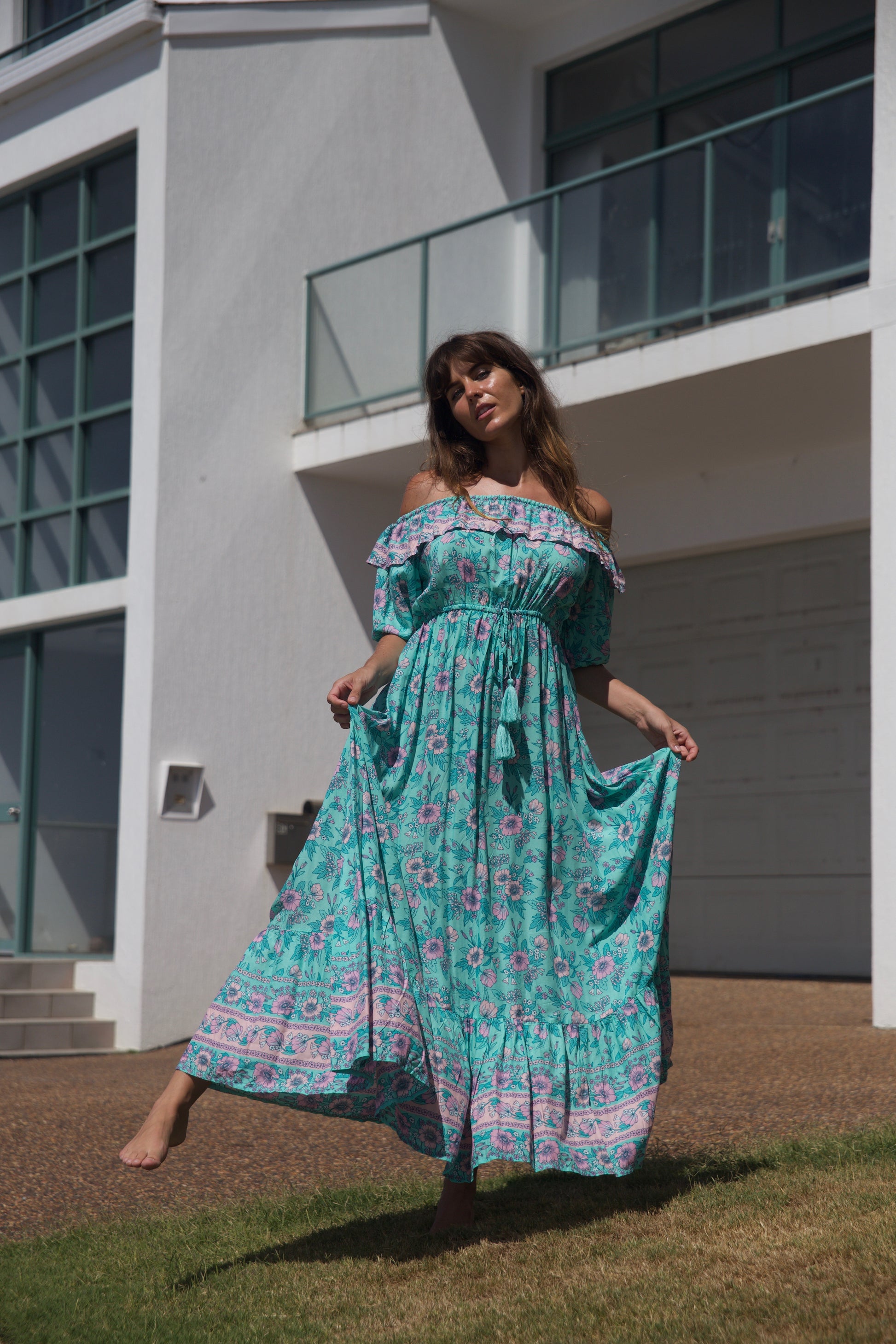 This absolutely stunning full floaty peasant style maxi dress can be worn on or off the shoulder.