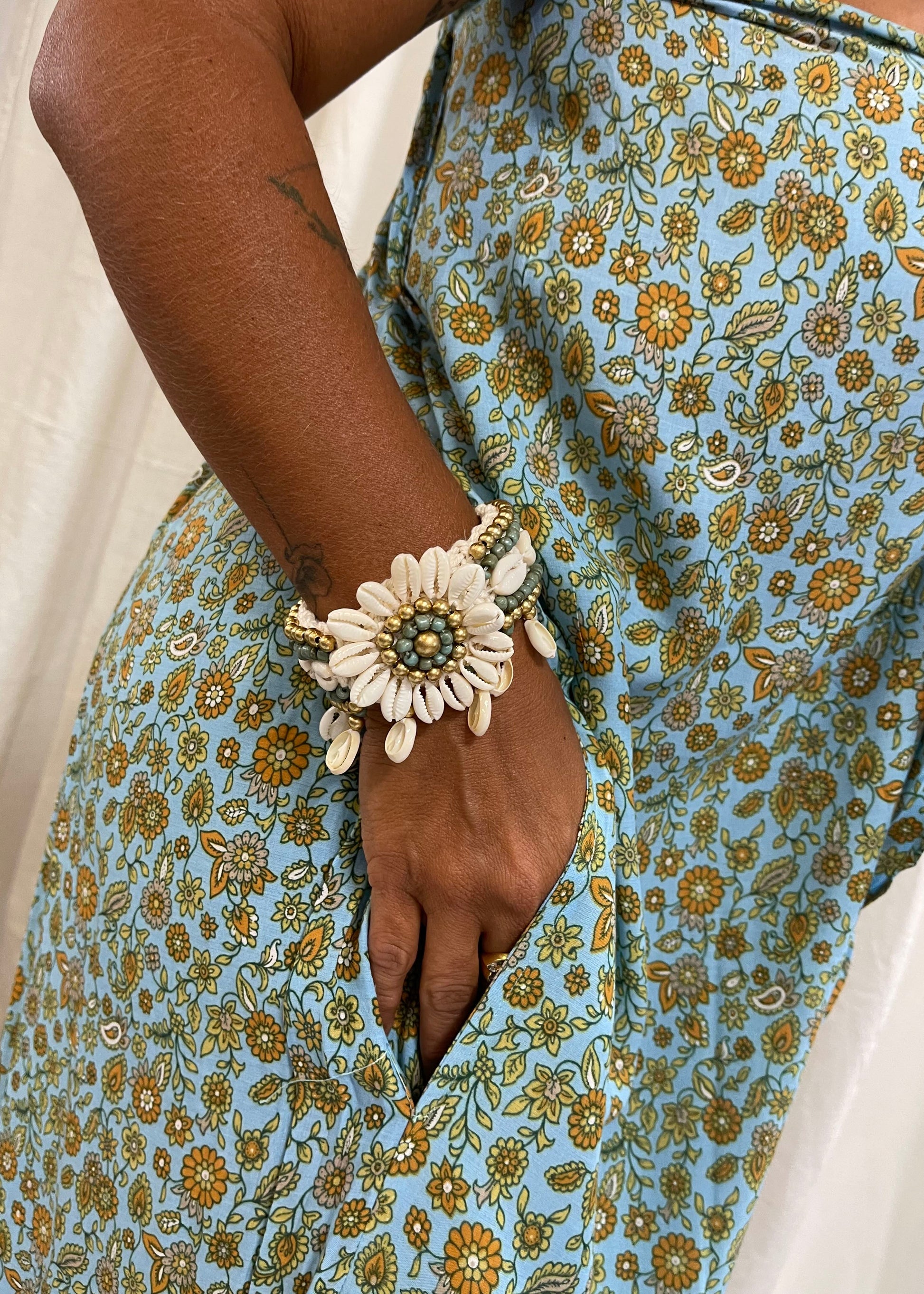 Wrap yourself in coastal vibes with our handcrafted shell-beaded wrap—a boho-chic piece that effortlessly transitions from wrist to ankle. Perfect for beach days, festivals, or everyday wear, this adjustable wrap adds the perfect touch of ocean-inspired elegance to any outfit.