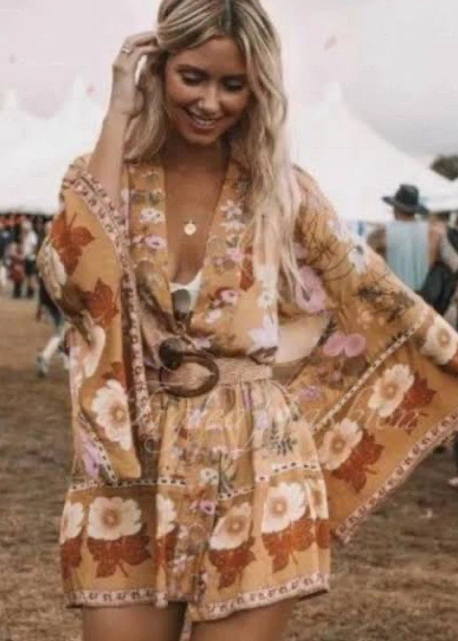 Spell & The Gypsy Collective Wild Bloom Short Kimono ~ Mustard
