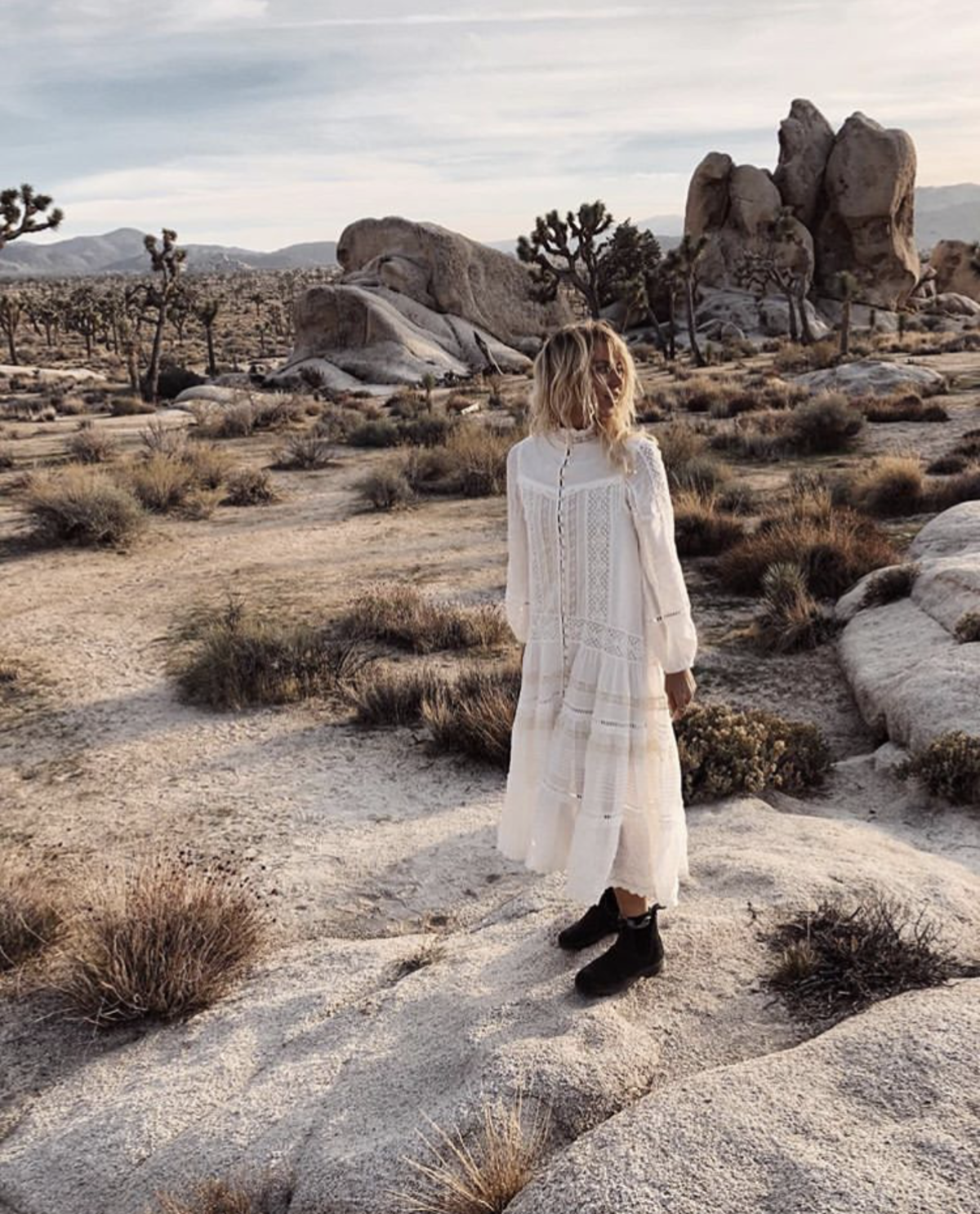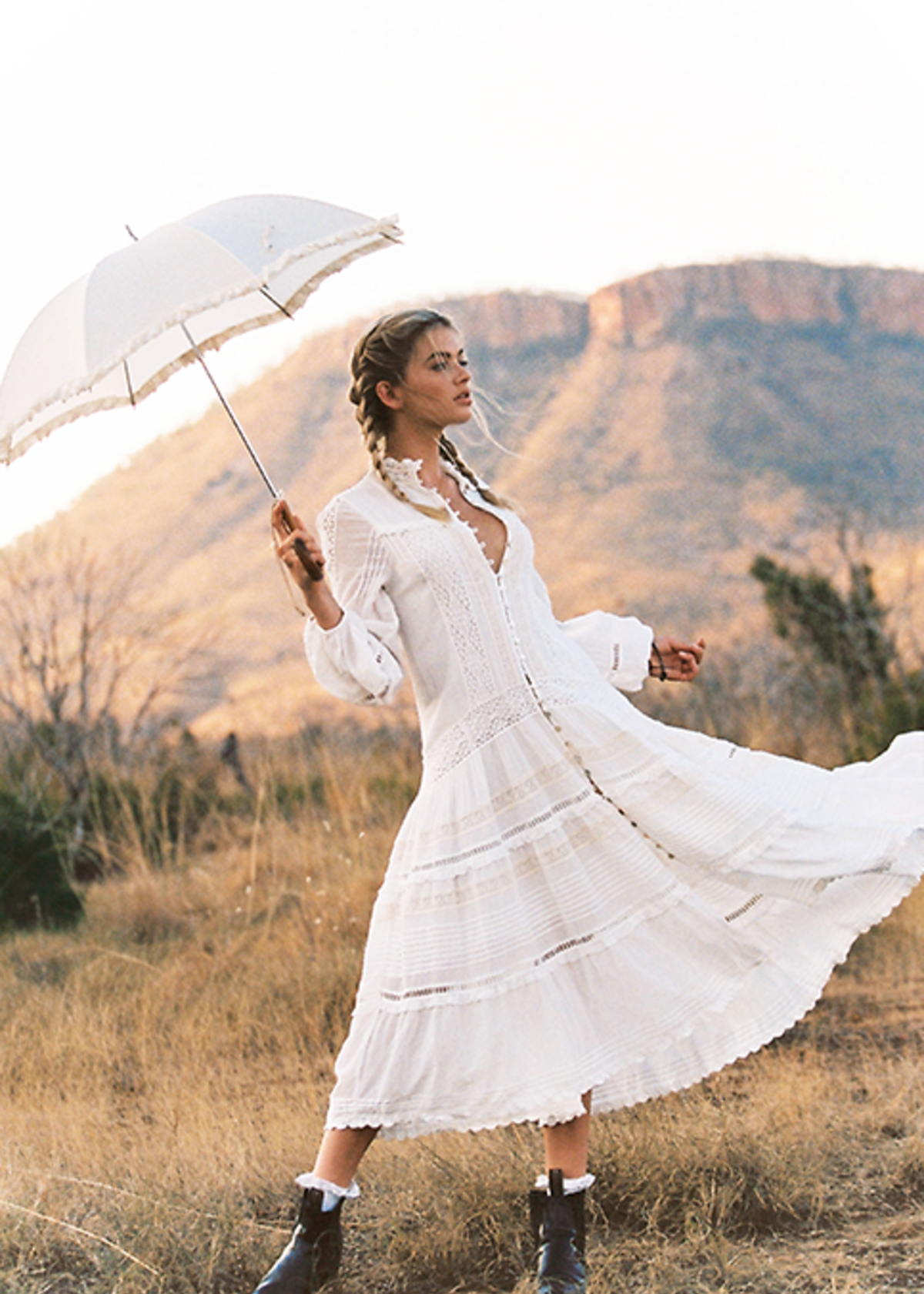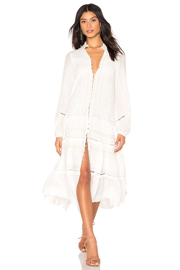 Spell & The Gypsy Collective Hanging Rock Gown in white is a romantic, vintage-inspired piece that showcases the brand's signature bohemian aesthetic.