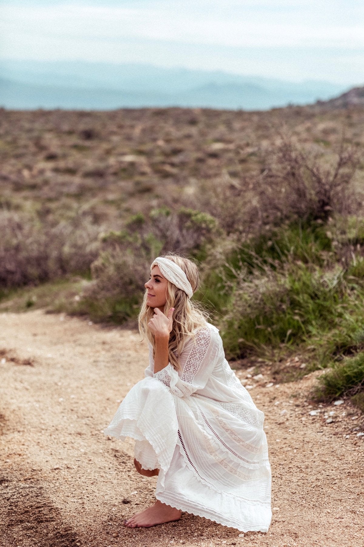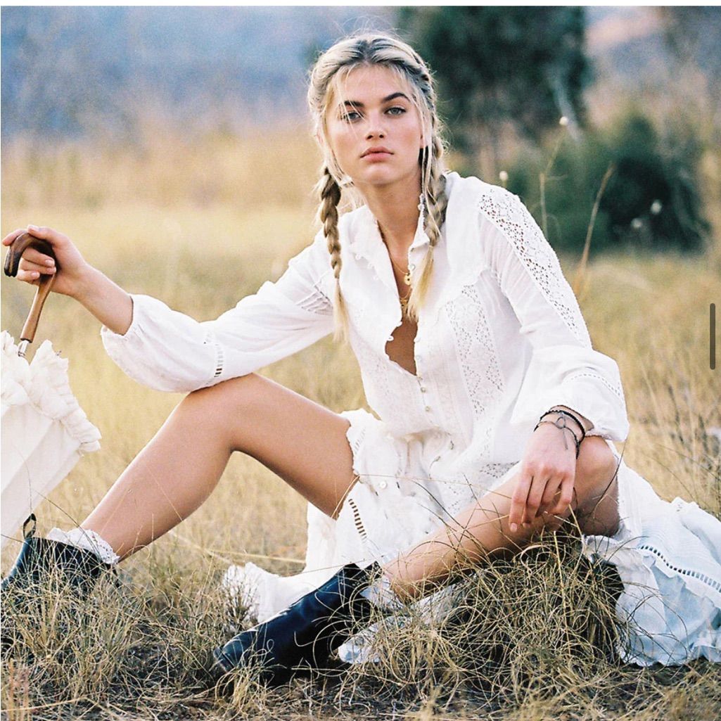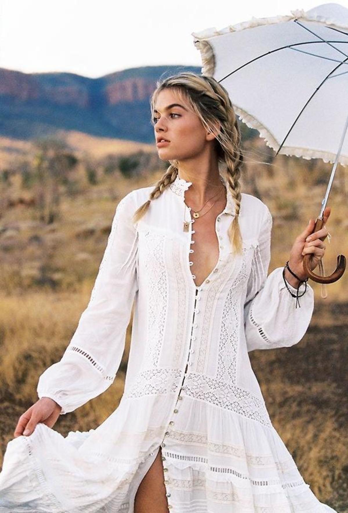 Spell & The Gypsy Collective Hanging Rock Gown in white is a romantic, vintage-inspired piece that showcases the brand's signature bohemian aesthetic.
