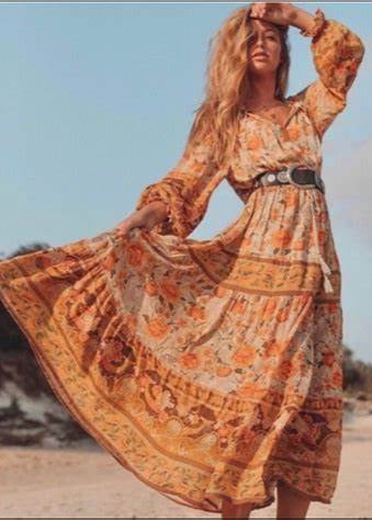 Sea Shell Gown by Spell & The Gypsy Collective. This enchanting maxi dress features a dreamy coastal print. Crafted in a soft blend of organic cotton and viscose, it drapes beautifully with its relaxed silhouette, adjustable drawstring and elastic waist, and flowing tiered skirt.